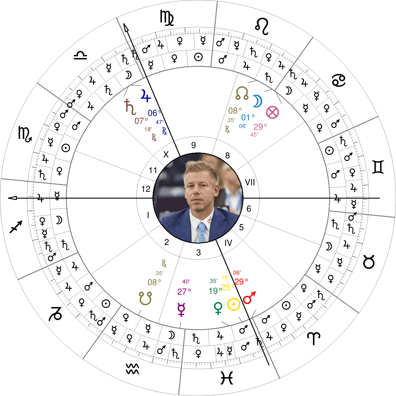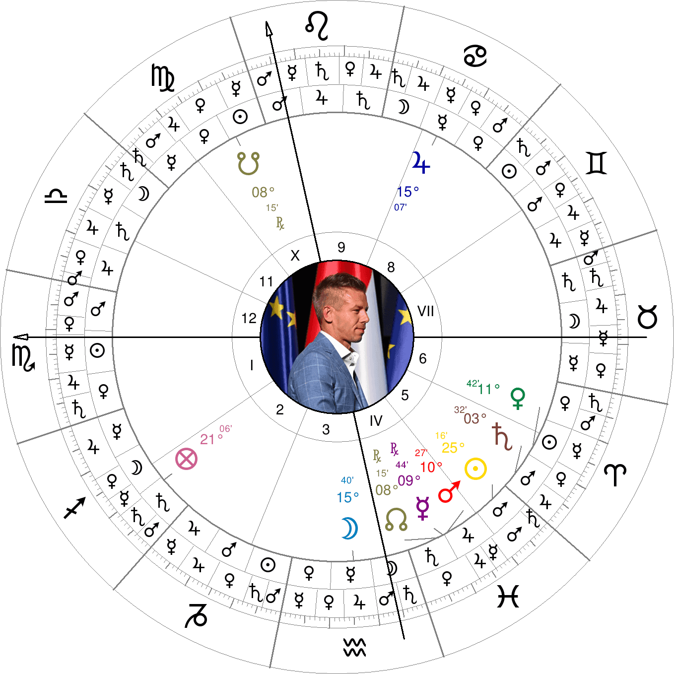 Фигура 1. Рожденият хороскоп на Пейтер Модьор